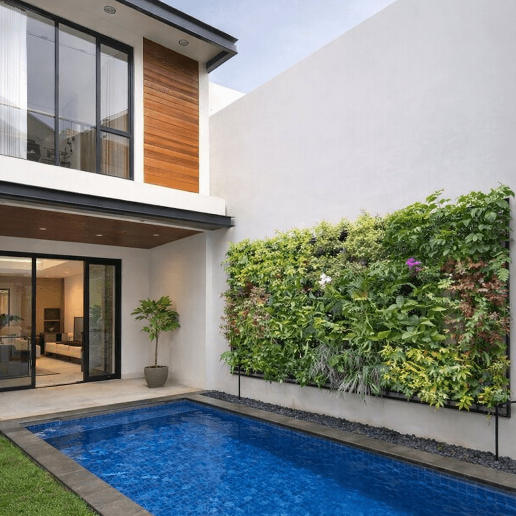 Di Bandung, taman vertikal banyak digunakan pada hunian modern, area komersial, hingga ruang publik untuk menciptakan lingkungan yang lebih sejuk dan menarik.